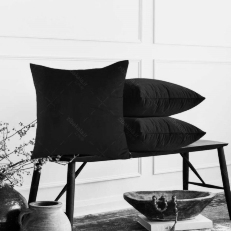 روکش کوسن ساده مخمل کالیفرنیا رنگ مشکی 3عددی زیب مخفی