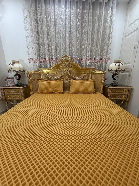 کاور تشک مخمل حبابی طلایی روتختی کشدار مخمل ضد لک برای تمامی ابعاد