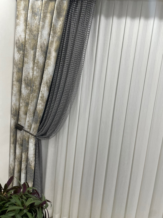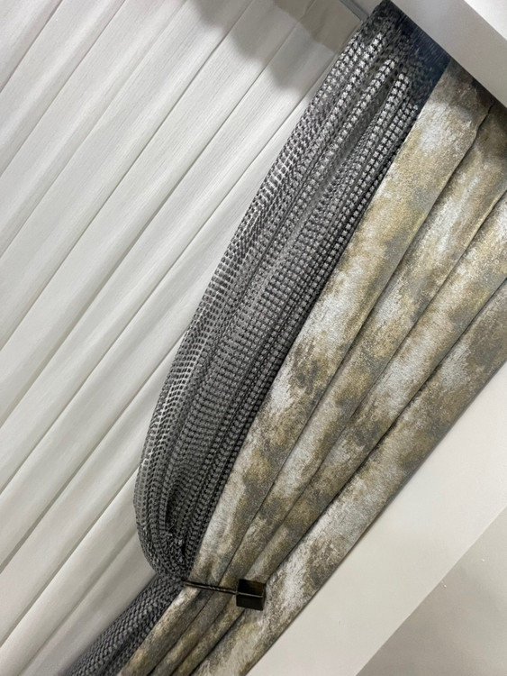 دکورپرده والان پرده طرح پتینه سیم دوزی مخمل جنس ترک
