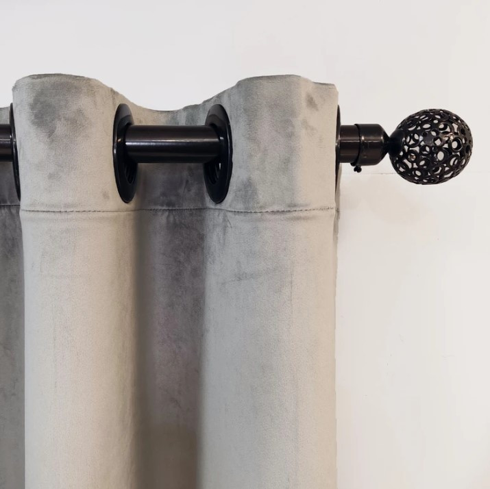 پرده آماده مخمل کالیفرنیا رنگ طوسی روشن دوخت پانچ 1.50 در 2.80