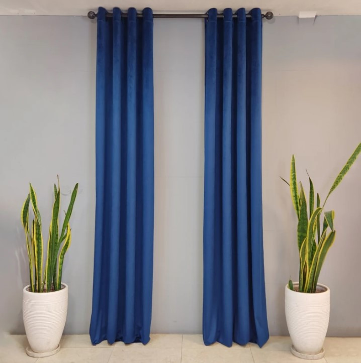 پرده مخمل آماده کالیفرنیا رنگ سرمه ای دوخت پانچ 1.50 در 2.80
