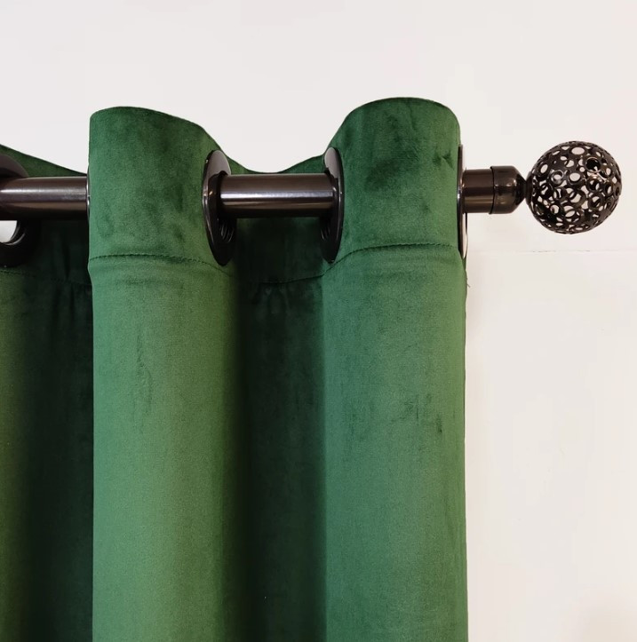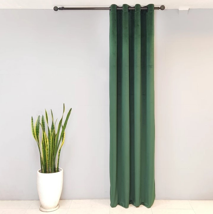 پرده مخمل آماده کالیفرنیا رنگ سبز کله غازی دوخت پانچ 1.50 در 2.80