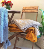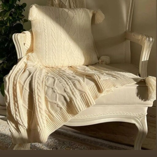 - این ست شامل شال مبل و کوسنهای بافت از جنس اکرولیک و با کیفیت است.