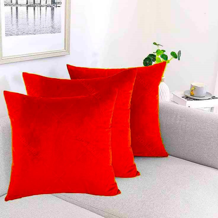 کوسن ساده مخمل کالیفرنیا رنگ قرمز زیب مخفی