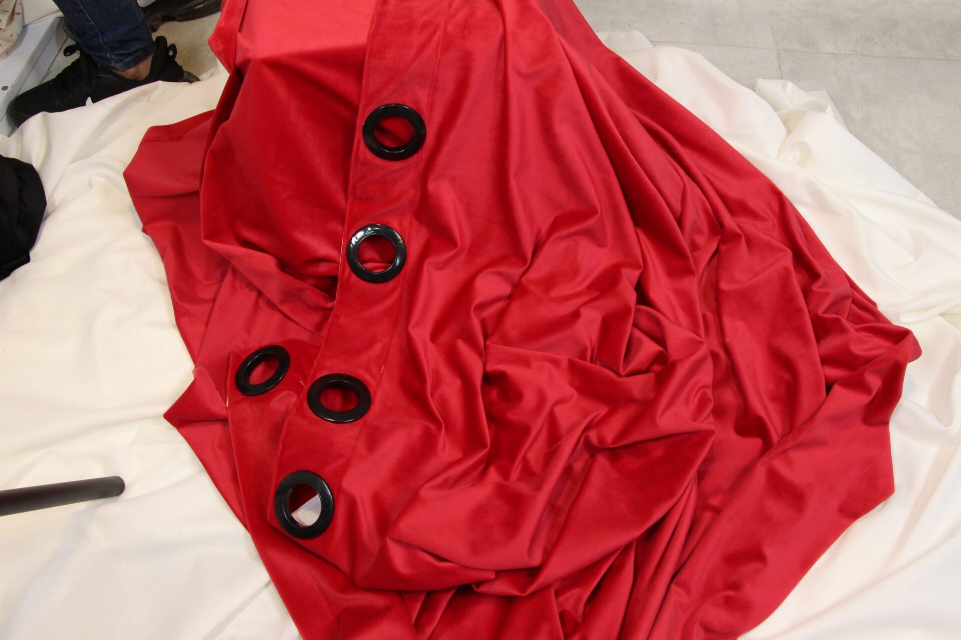 پرده آماده مخمل کالیفرنیا رنگ قرمز دوخت پانچ 1.50 در 2.80