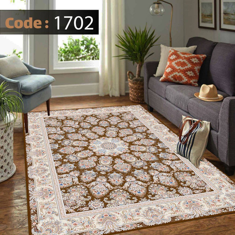 کاورفرش روفرشی دورکشدار گوشه لیفه ای کرم قهوه ای کد 1702