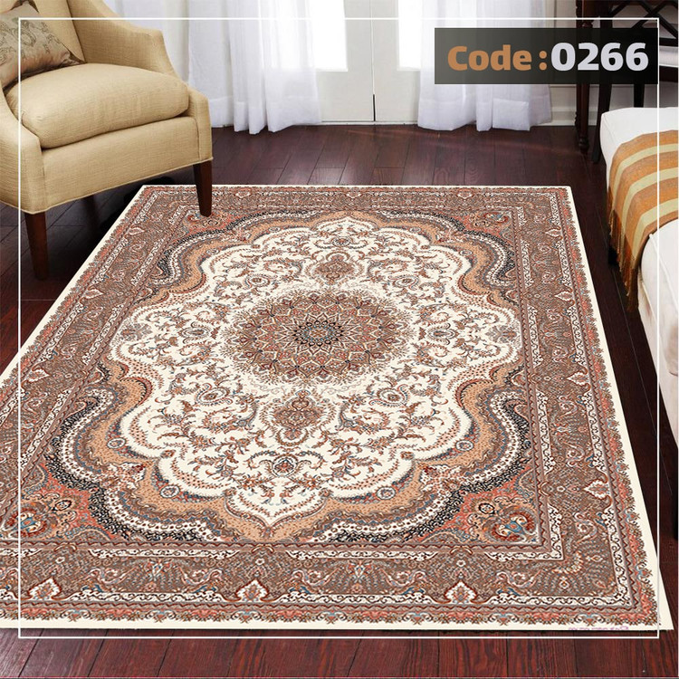 کاورفرش روفرشی دورکشدار گوشه لیفه ای کرم قهوه ای کد 0266