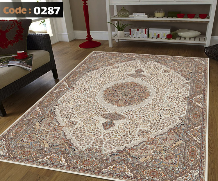 کاورفرش روفرشی دورکشدار گوشه لیفه ای کرم قهوه ای کد 0287