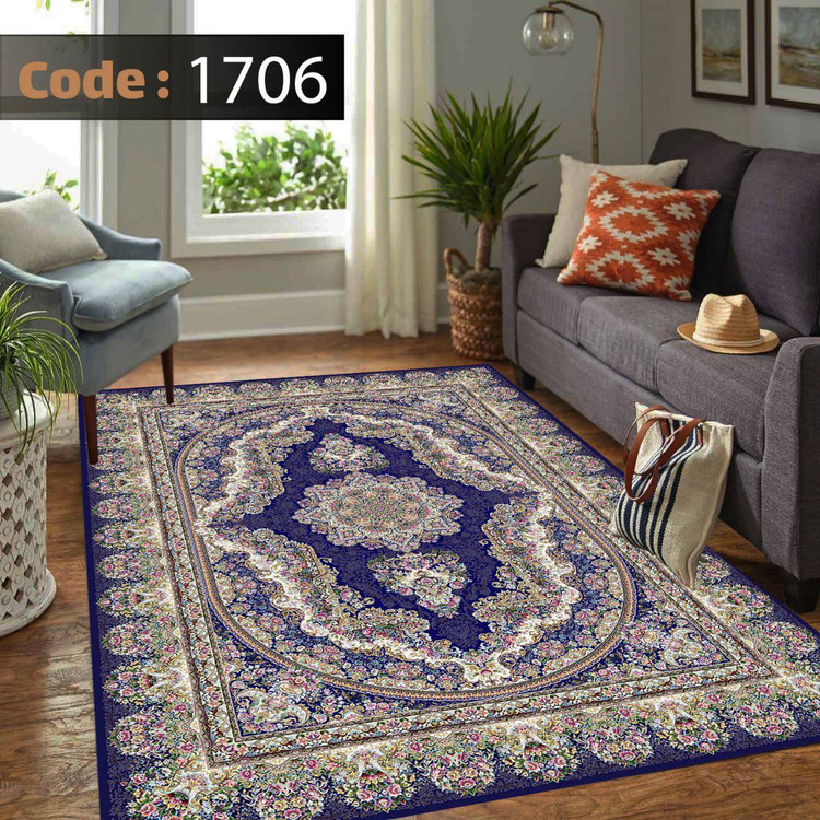 کاورفرش روفرشی دورکشدار گوشه لیفه ای لاکی ، آبی و متنوع کد 1706