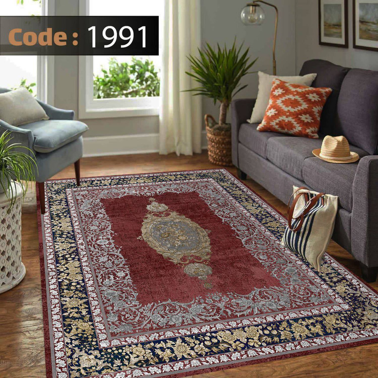 کاورفرش روفرشی دورکشدار گوشه لیفه ای لاکی ، آبی و متنوع کد 1991