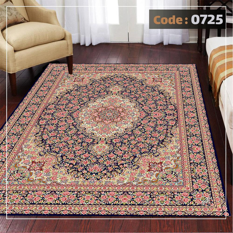 کاورفرش روفرشی دورکشدار گوشه لیفه ای لاکی ، آبی و متنوع کد 0725