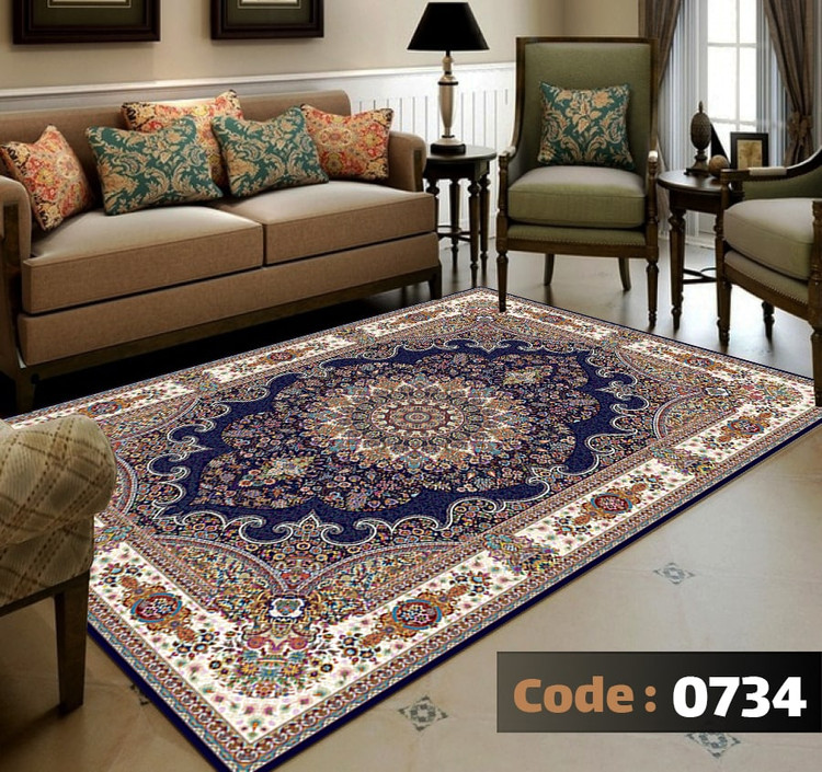 کاورفرش روفرشی دورکشدار گوشه لیفه ای لاکی ، آبی و متنوع کد 0734