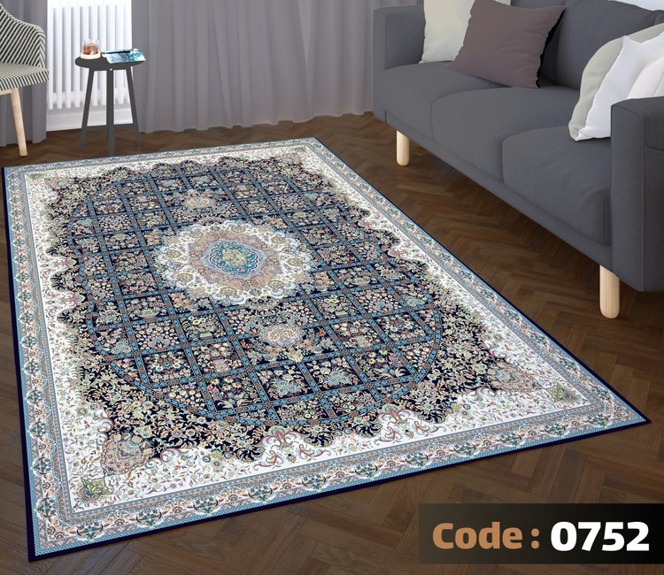 کاورفرش روفرشی دورکشدار گوشه لیفه ای لاکی ، آبی و متنوع کد 0752