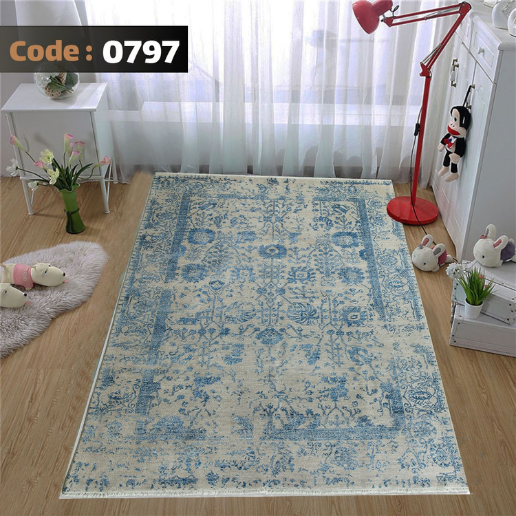 کاورفرش روفرشی دورکشدار گوشه لیفه ای لاکی ، آبی و متنوع کد 0797