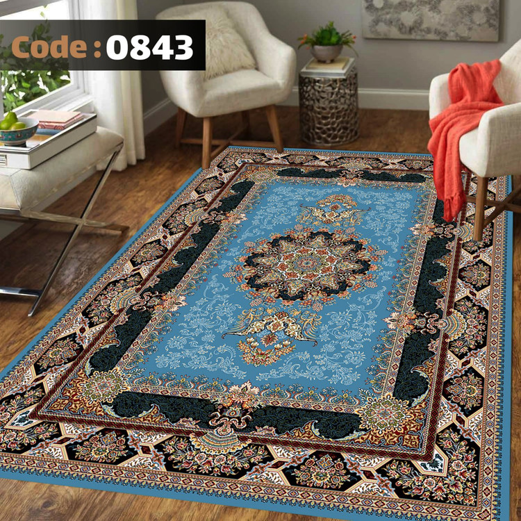 کاورفرش روفرشی دورکشدار گوشه لیفه ای لاکی ، آبی و متنوع کد 0843