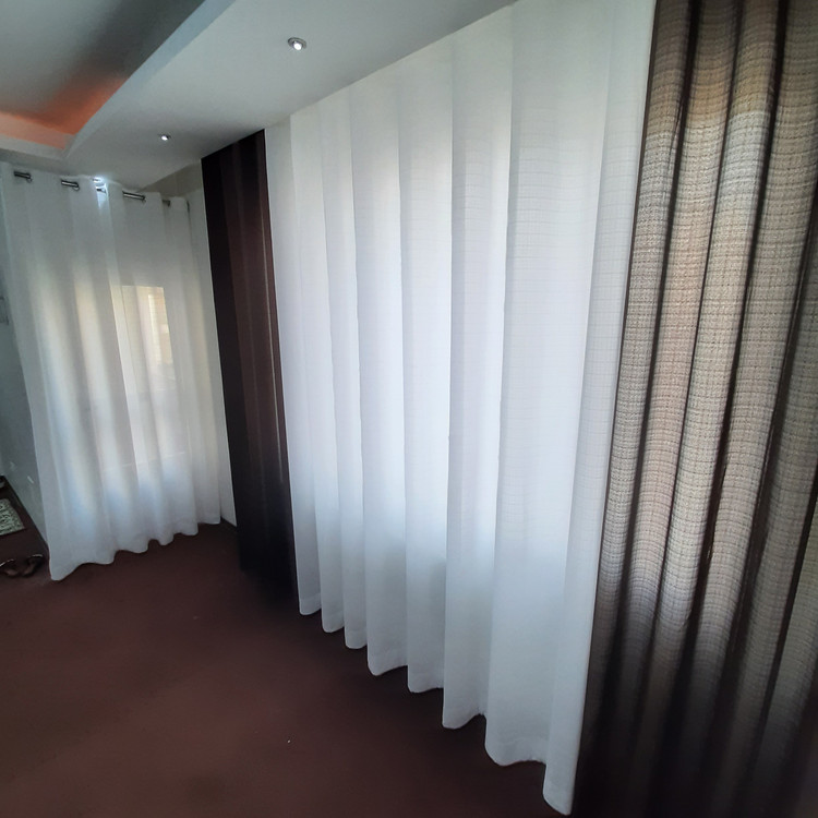 پرده پانچ شده حریر نازلی (بافت دار) به صورت پانچ شده عرض 1.5 ارتفاع 2.80 و قابل تغییر به میزان مورد نیاز مشتری