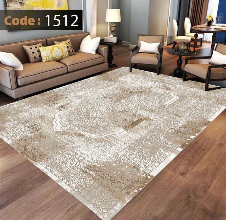 کاورفرش روفرشی دورکشدار گوشه لیفه ای کرم قهوه ای کد 1512