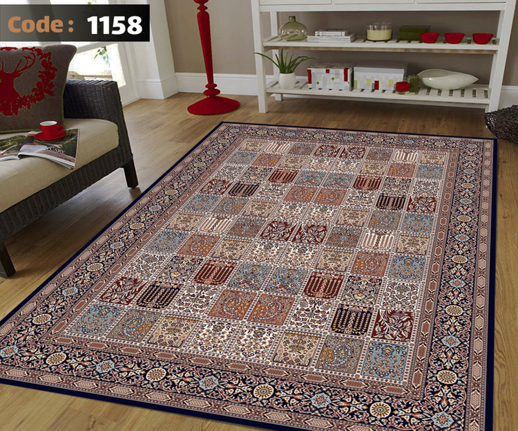 کاورفرش روفرشی دورکشدار گوشه لیفه ای لاکی ، آبی و متنوع کد 1158