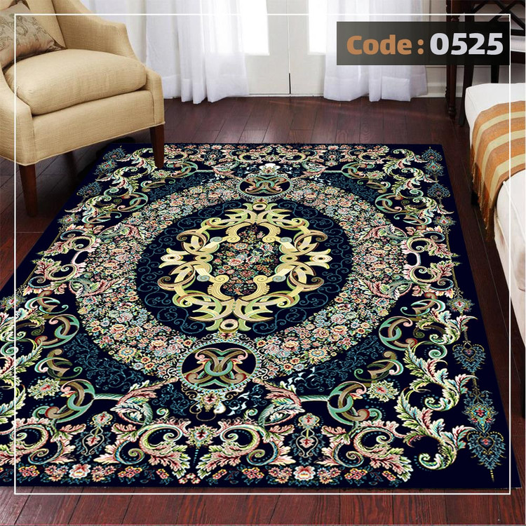 کاورفرش روفرشی دورکشدار گوشه لیفه ای لاکی ، آبی و متنوع کد 0525