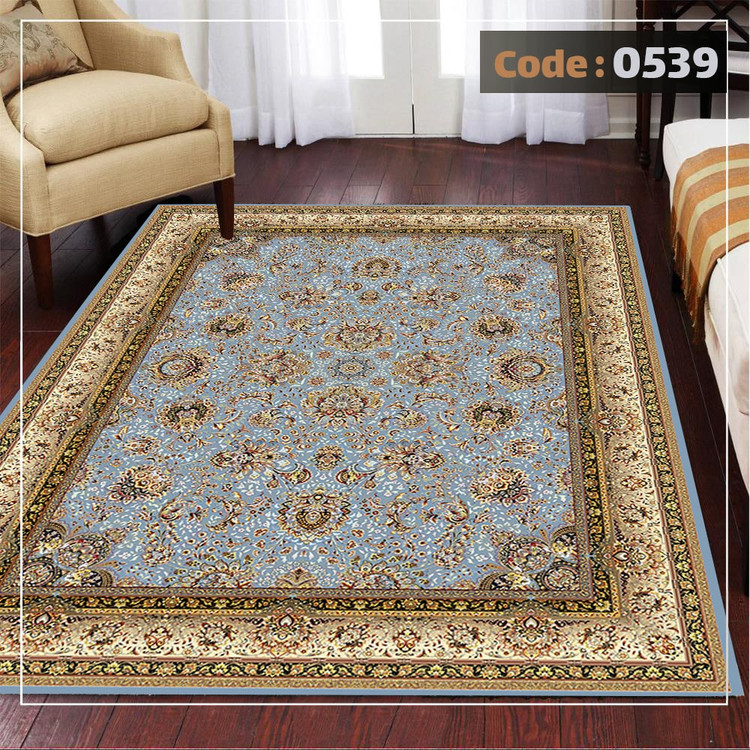 کاورفرش روفرشی دورکشدار گوشه لیفه ای لاکی ، آبی و متنوع کد 0539