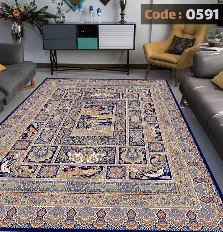 کاورفرش روفرشی دورکشدار گوشه لیفه ای لاکی ، آبی و متنوع کد 0591